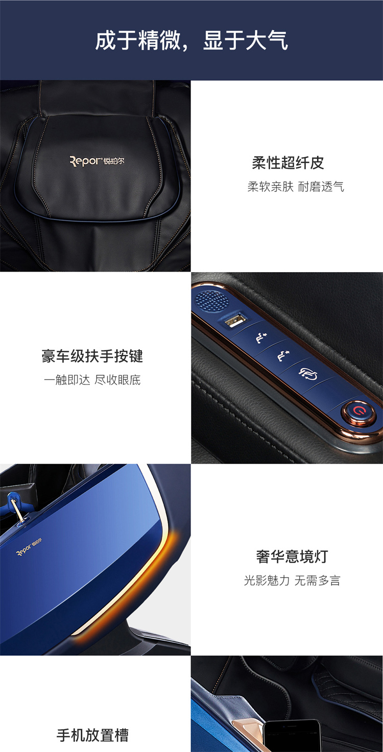 銳珀?duì)栃缕钒茨σ蜤8 Pro擁有溫感養(yǎng)生系統(tǒng),3D擺揉機(jī)械手,十大按摩手法,138cm超長(zhǎng)SL按摩導(dǎo)軌,腿足一體按摩等功能,并且有無(wú)線(xiàn)充的一款新品按摩椅,價(jià)格不貴,重在享受。