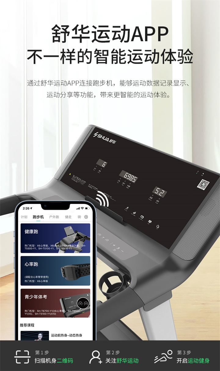 舒華I5智能家用跑步機(jī)是由舒華體育聯(lián)合中國體育科學(xué)學(xué)會(huì)、上海體育大學(xué)運(yùn)動(dòng)科學(xué)學(xué)院教授陸大江等權(quán)威機(jī)構(gòu)、專家共同研發(fā)設(shè)計(jì)。獨(dú)特之處在于它結(jié)合國際科學(xué)跑步研究理論,能夠針對不同用戶進(jìn)行運(yùn)動(dòng)能力測試,并根據(jù)測試結(jié)果生成因人而異的有氧運(yùn)動(dòng)處方。這意味著每個(gè)用戶都能得到一個(gè)適合自己的運(yùn)動(dòng)方案,從而更好地達(dá)到運(yùn)動(dòng)效果。這一創(chuàng)新技術(shù)可以確保用戶在運(yùn)動(dòng)過程中能夠保持在最佳的區(qū)間狀態(tài),從而提高運(yùn)動(dòng)安全性和有效性。