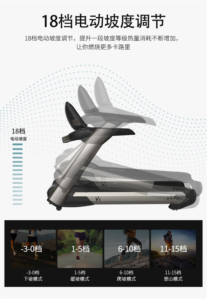 舒華跑步機(jī)SH-T5500采用T18mm的跑板,T1.6 鉆石紋的跑帶,運用6位硅膠減震,對您跑步中的膝蓋進(jìn)行全方位的呵護(hù),選用手握心率測試,跑步面積達(dá)480×1350mm,可承受126kg的使用者使用。