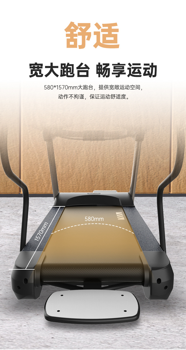 舒華多功能跑步機(jī)T56 SH-T5600-T2跑臺(tái)尺寸是480×1200mm,持續(xù)馬力是DC 1.5CHP(無(wú)刷電機(jī))。